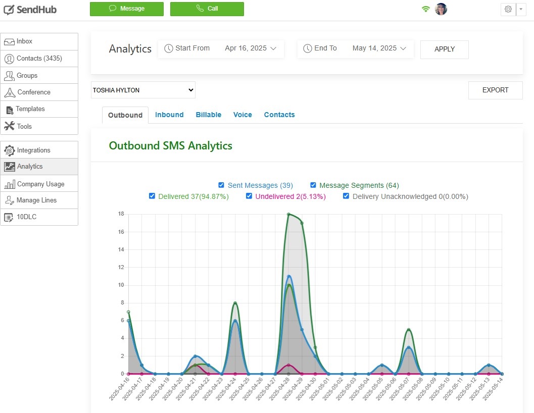Whether you're a solo operator or a large team, SendHub’s analytics put you in control of your communication outcomes.